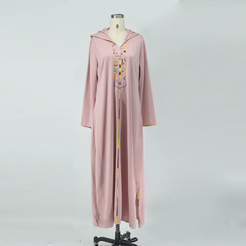 Djellaba aux motifs colorés et coupe moderne, parfaite pour un style décontracté, élégant et joyeux au quotidien.